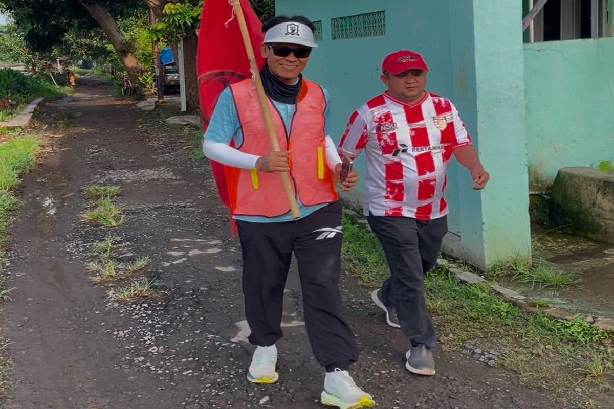 JAKARTA, PANJIRAKYAT: Anggota DPR RI Didik Haryadi telai menunaikan nazarnya dengan berjalan kaki dari Jakarta menuju Boyolali, Jawa Tengah, Selasa (27/01/2025).